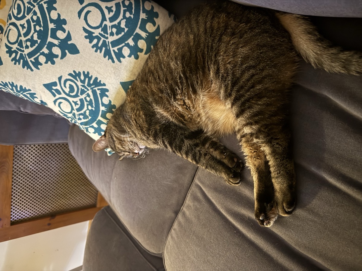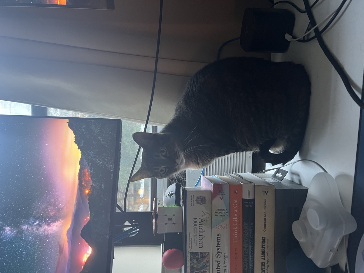 This is my cat. She likes to sit on my computer science textbooks and sleep while I work. Very helpful co-worker.