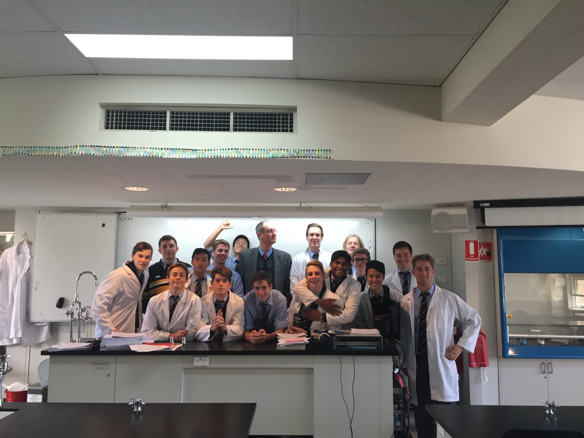 Sydney Grammar is one of the oldest schools in Australia. Rigorous academics. This is our chemistry class — lab coats, hands-on science. Great teachers who pushed us.